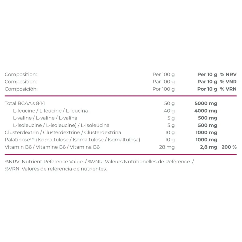 Ciclo dextrina (clusterdextrine®): Proporciona una fuente de energía sostenida sin aumentar los niveles de azúcar en sangre, ideal para una rápida recuperación.