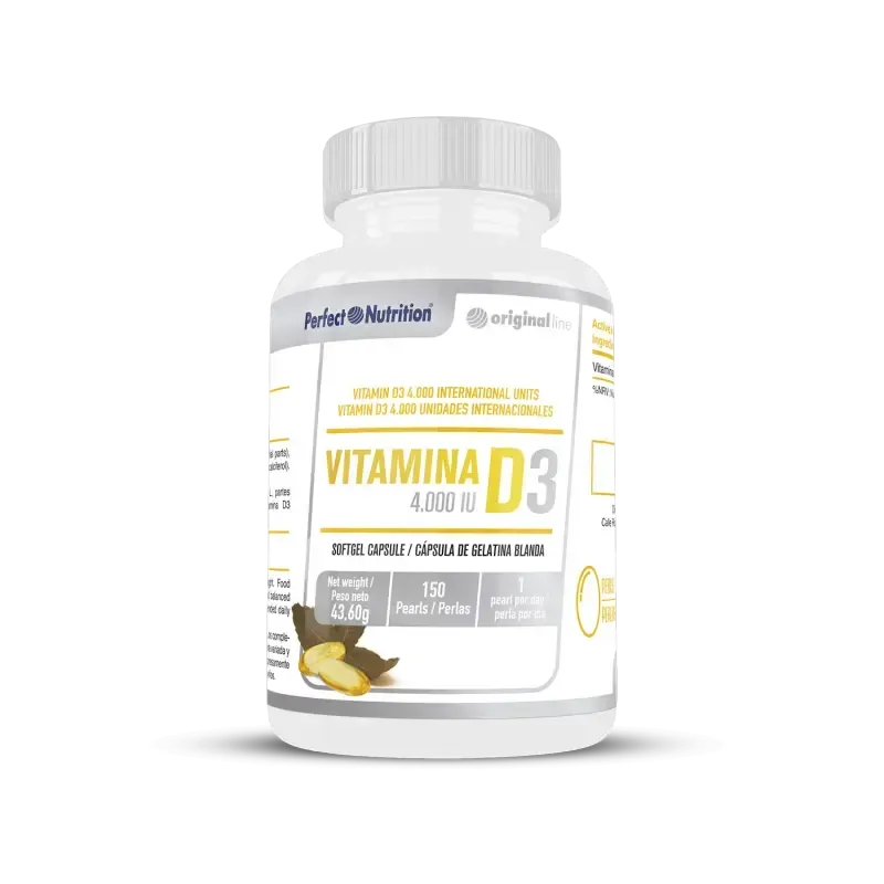 150 perlas de vitamina D3 de alta biodisponibilidad para favorecer la absorción de calcio y el buen funcionamiento del sistema inmunitario.